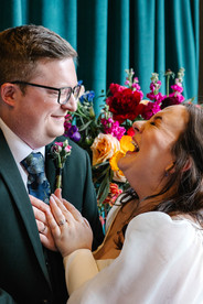 Every corner screamed “us” - from rich, juicy colours to playful details you could spot a mile away. Bold florals? Tick. Thoughtful touches? Everywhere. Styling that melted into the party seamlessly, like it just belonged there. The bride set the tone with the most spectacular drape wall I've ever photographed and Birdcages & Dragonflies combined her talents with Jones & Jones Florals creating a show stopping spectrum of colourful vases and flowers that echoed H & S's colourful personalities.