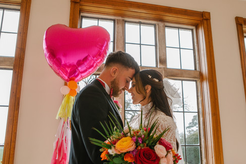 From a floral colour explosion wedding ceremony in Kinmounts Orangery to a playful setup in the Pavillion this shoot's styling was a feast for the eyes. This varied from bold balloon and tassel installations, ornate styling of the table decor and abstract wedding cake to beautifully detailed and bespoke wedding stationery.